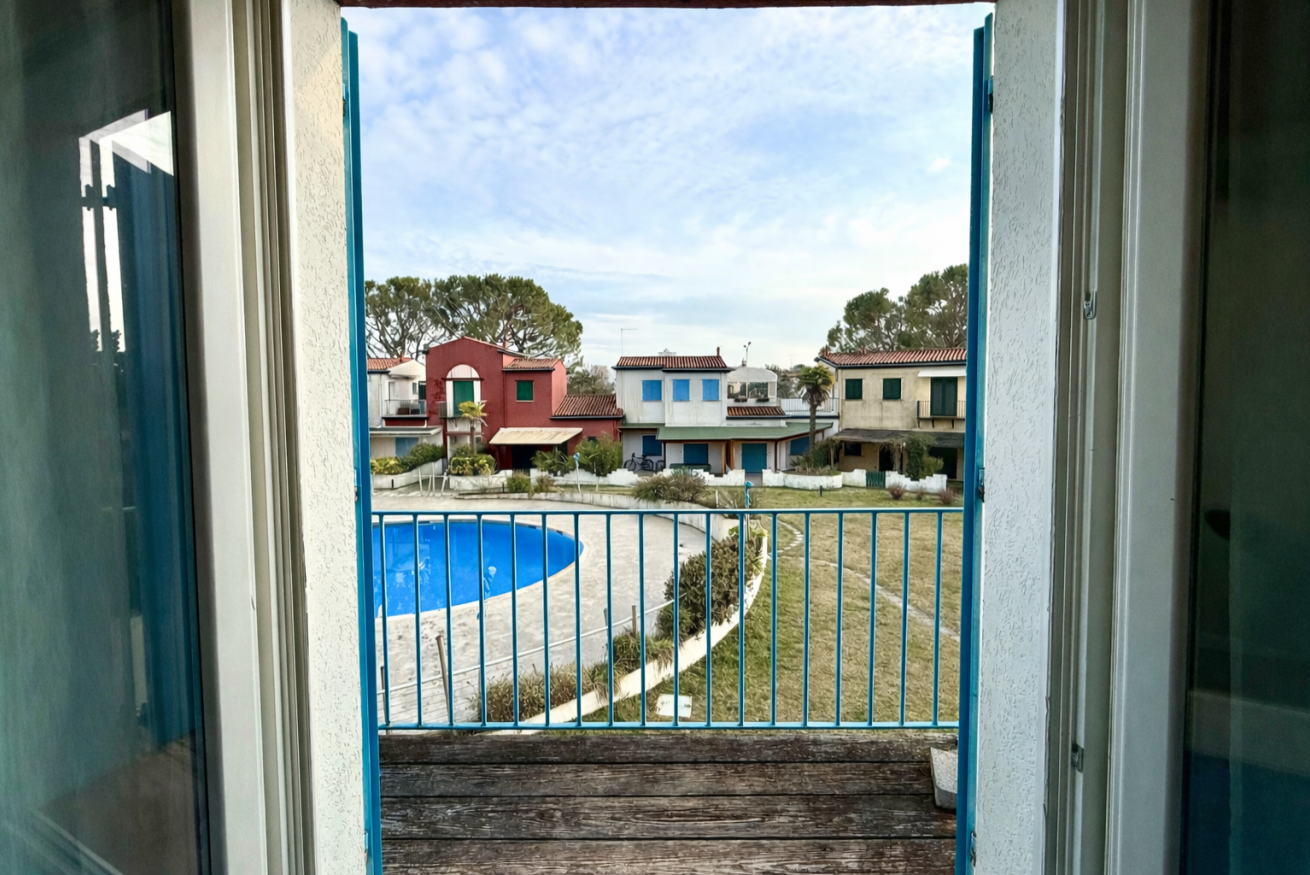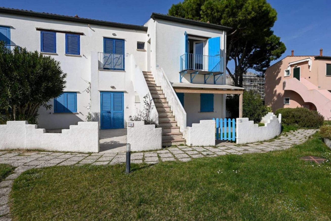 Appartamento al primo piano, senza ascensore, situato all’interno di un residence con piscina, in posizione tranquilla alle spalle di Piazza Marina.